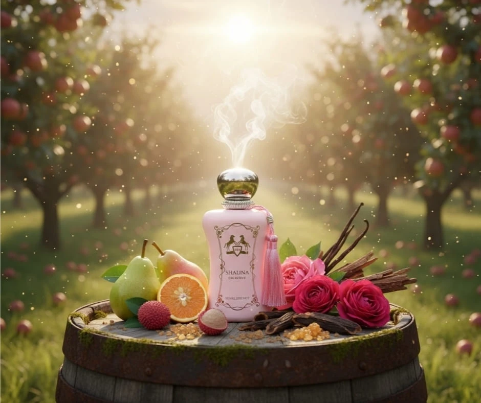 Fragrance World Shalina Exclusive Royal Essence 100 ml EDP to arabskie oryginalne perfumy damskie o eleganckim, orientalno-kwiatowym charakterze z wyraźnym luksusowym akcentem. Kompozycja łączy soczystą gruszkę i liczi z bergamotką w otwarciu, serce z tureckiej róży, oudu i kadzidła oraz ciepłą, drzewno-waniliową bazę.